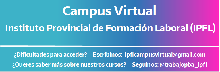 Este es un espacio de formación y capacitación virtual del Instituto Provincial de Formación Laboral (IPFL), dependiente del Ministerio de Trabajo, destinado a toda la comunidad de la provincia de Buenos Aires, para garantizar el derecho a la formación laboral.